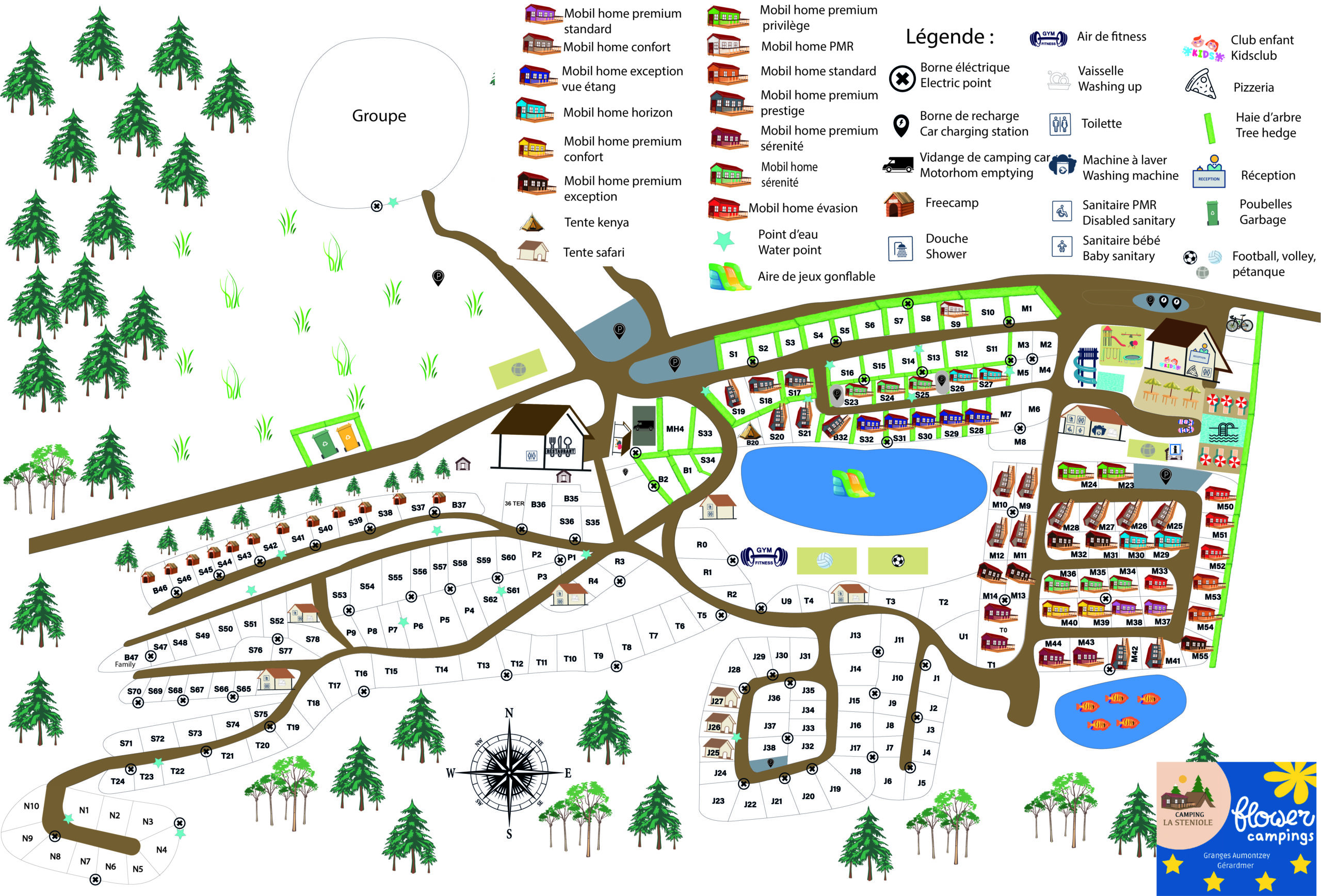 Auf einem grünen Gebiet von 7 Hektar, bieten wir Ihnen 122 geräumige und bewaldete Stellplätze: in der Sonne oder im Schatten findet jeder seine Ecke der Ruhe. Nach Ihren Wünschen, setzen Sie sich auf einem Nackter Stellplatz mitten in der Natur, entscheiden Sie sich für ein Premium-Stellplatz mit privaten Sanitäranlagen, oder genießen Sie den Komfort unserer Mietunterkünfte: Mobilheime, Glamping-Zelte oder Studios.